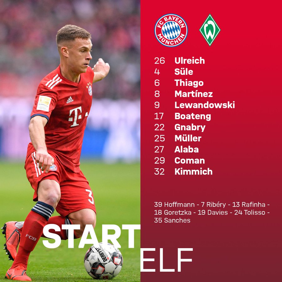 Bundesliga Team News Bayern Munich Vs Werder Bremen Confirmed Fcb Lineup 90min